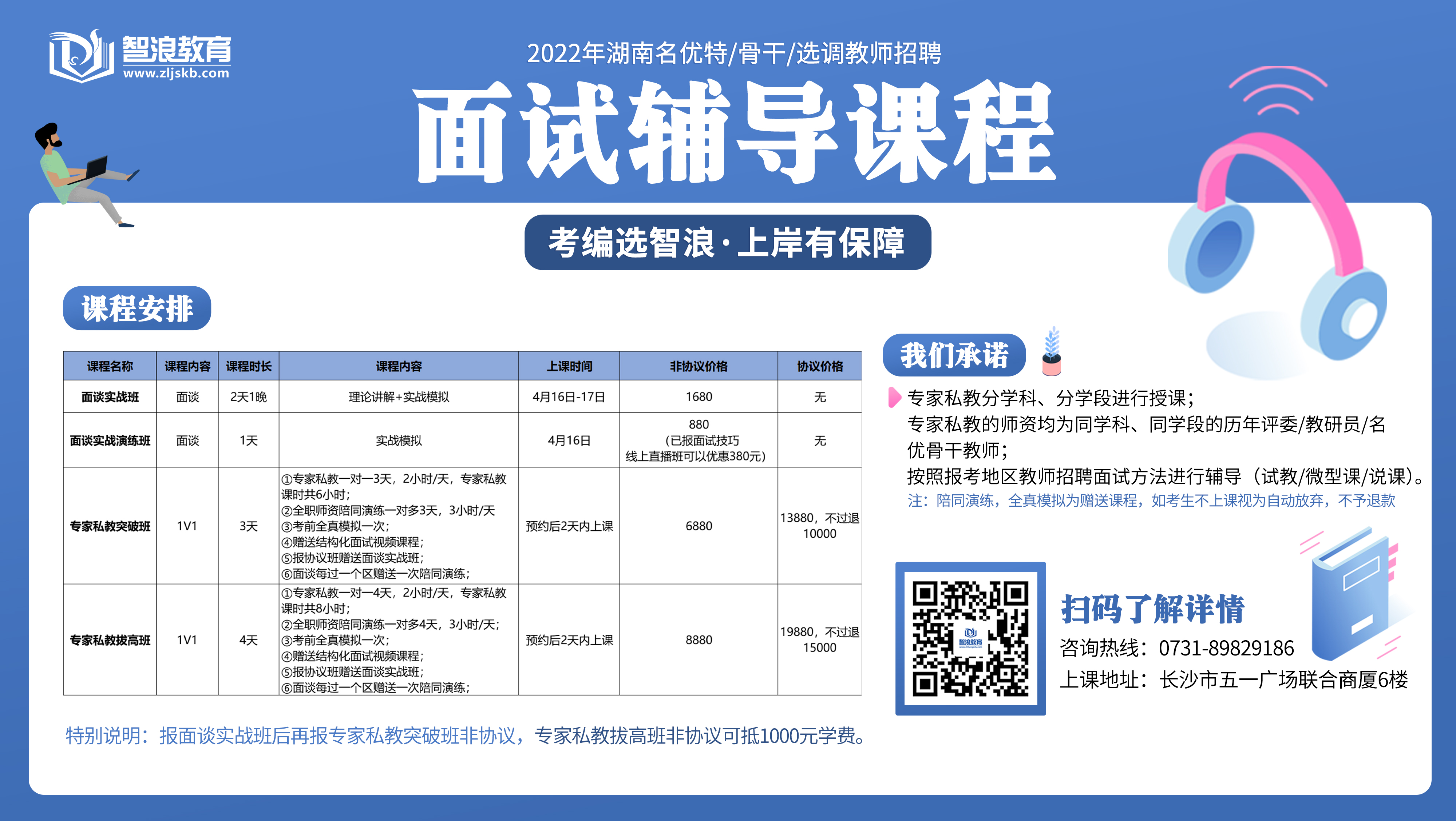 针对长沙市天心区名优特选调面试,智浪教师网推出名优特/骨干/选调面试辅导课程,扫码即可咨询