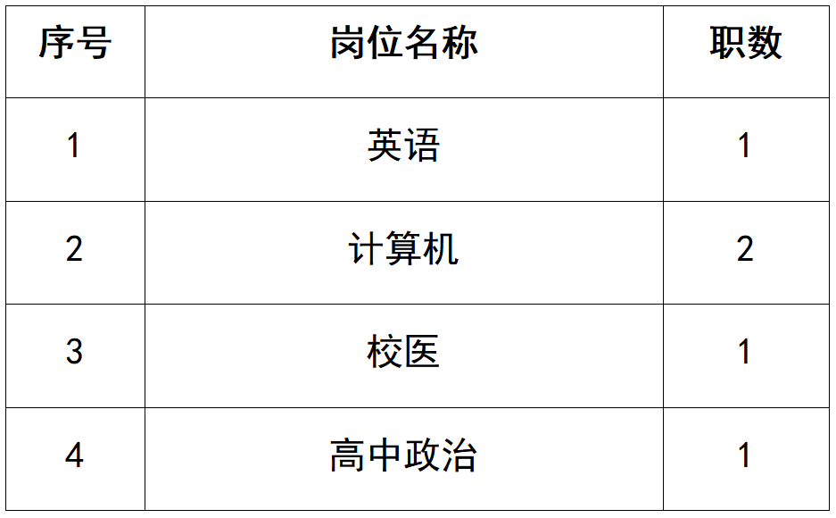 3.报名条件:英语、计算机和高中政治岗位要求具有高级中学或中等职业技术学校教师资格,报考人员所学专业或教师资格学科或专业技术职务(职称)须与招聘岗位相符,年龄在45岁以下(1979年1月1日以后出生);校医岗位要求专业为临床或中医学或公共卫生,年龄在40周岁以下(1984年2月1日以后出生)。