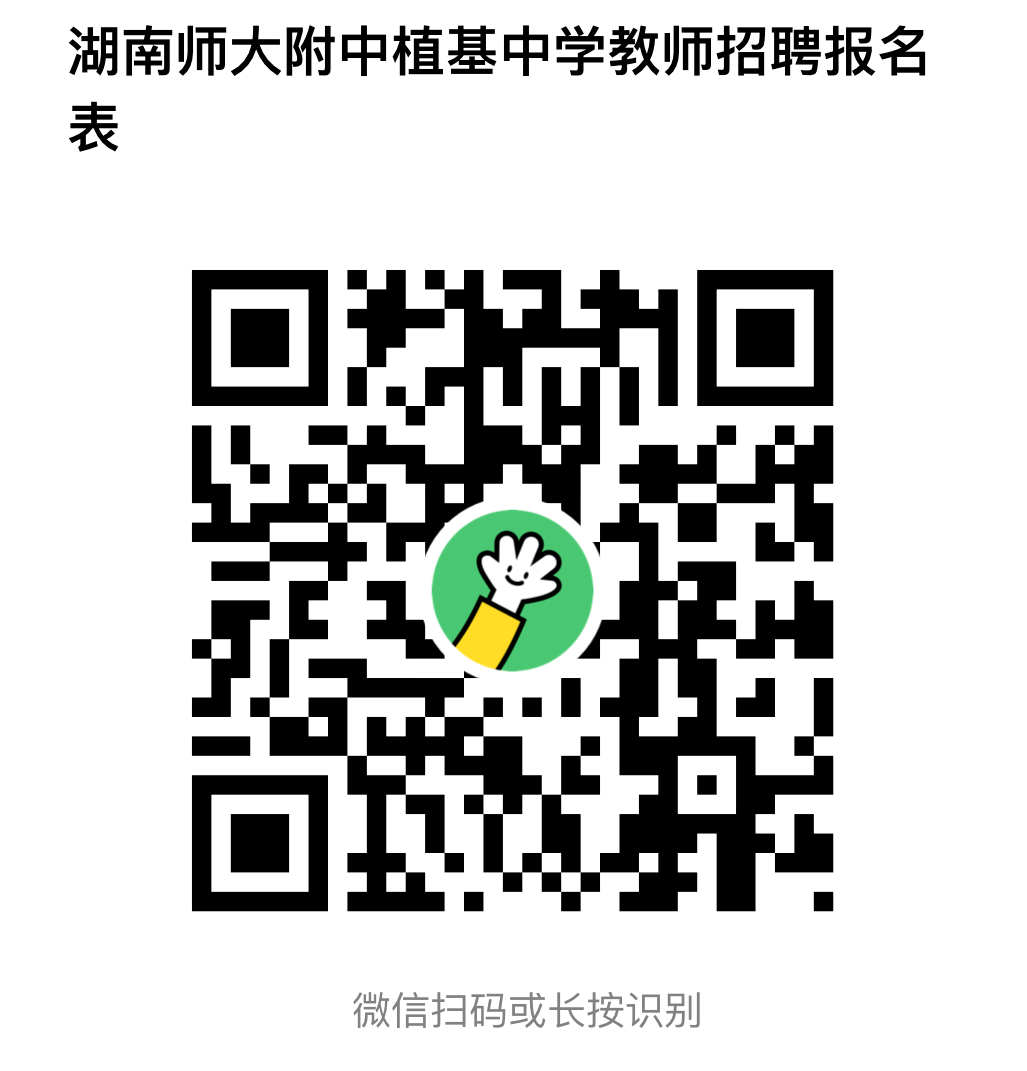 2.方式:请使用微信扫描下方二维码,填写《湖南师大附中植基中学教师招聘报名表》,填写完成后即完成报名。